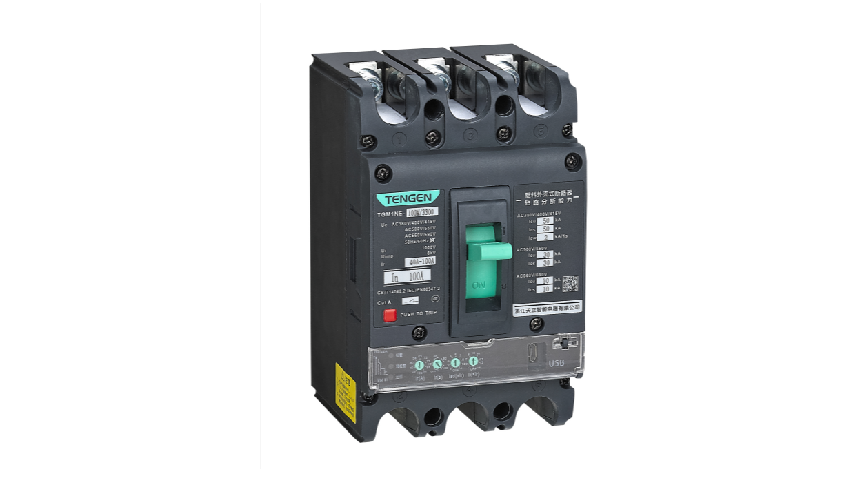 TGM1NE 系列塑料外壳式断路器(以下简称断路器)是我公司采用国际先进技术研制、开发的新型断路器之一。具有保护全面、性能优异、小型紧凑等特点。断路器按照其额定极限短路分断能力(Icu)的高低分为 M 型(较高分断型)、H 型(高分断型)两类,是配电及电动机保护的理想产品。其额定绝缘电压 1000V,适用于交流 50/60Hz, 额定工作电压 690V 及以下,整定电流从 12.5A 至 1600A 的电路中作线路的不频繁转换和电动机的不频繁启动之用。断路器可增选具有通讯功能的模块,使原有断路器方便升级为通讯型断路器。断路器具有过载长延时、短路短延时、短路瞬时、接地保护、中性极保护等功能,产品可选配欠电压、分励、辅助、报警及通讯等附件。本系列断路器可垂直安装(即竖装),亦可水平安装(即横装),具有隔离功能。注:3P+N 无隔离功能。